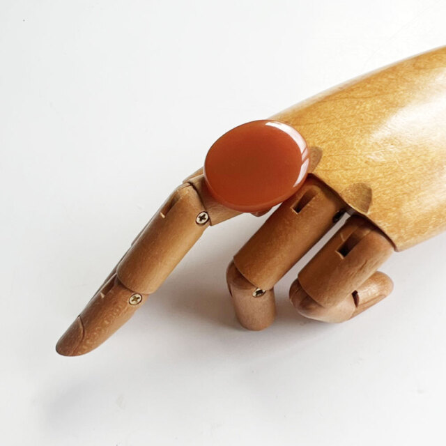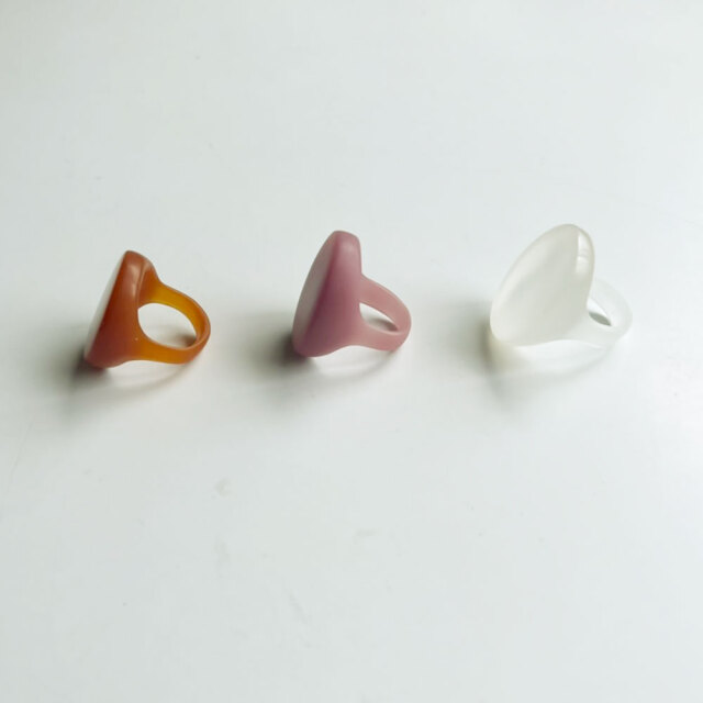 扱いの難しい硬質の樹脂を使ったリングは、
