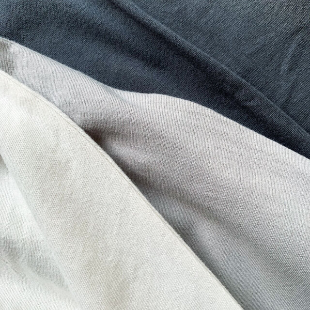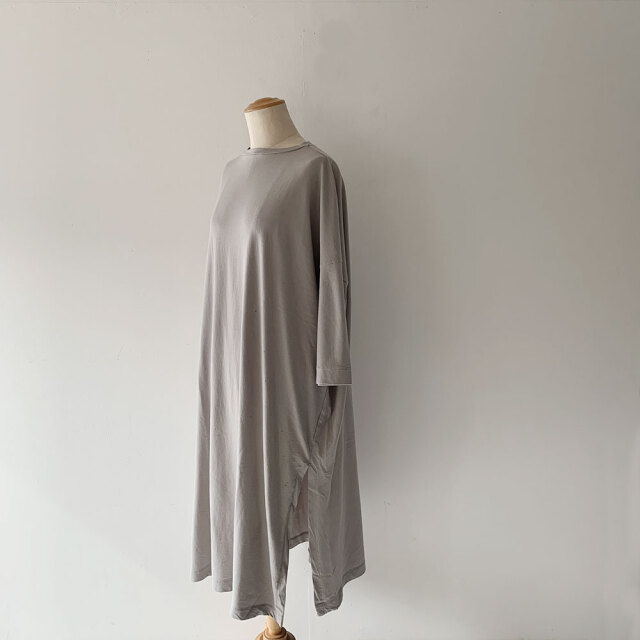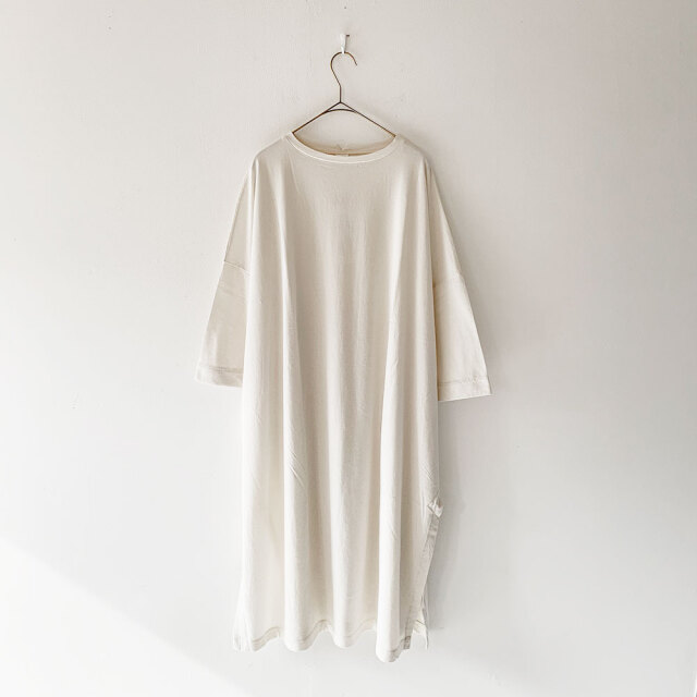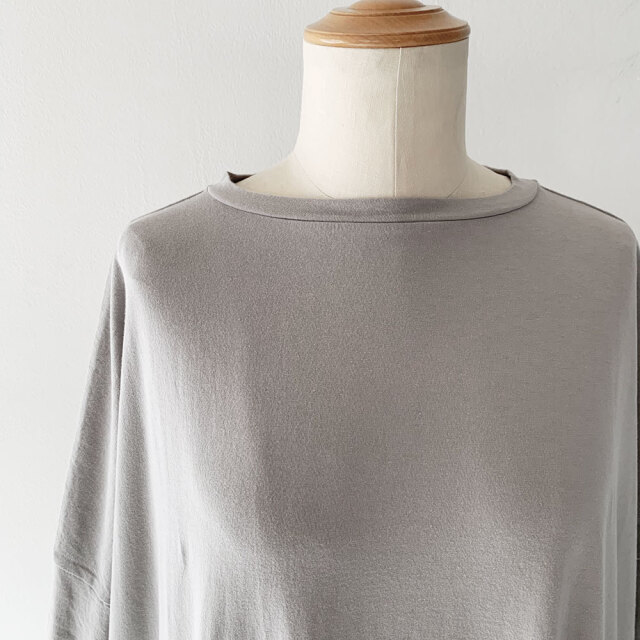 カジュアルでありつつも袖の長さ、裾のスリット、首周りに