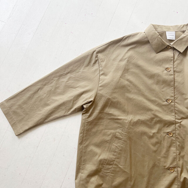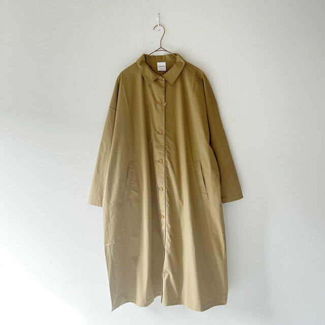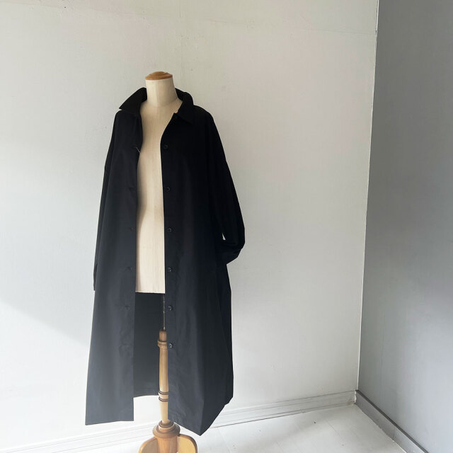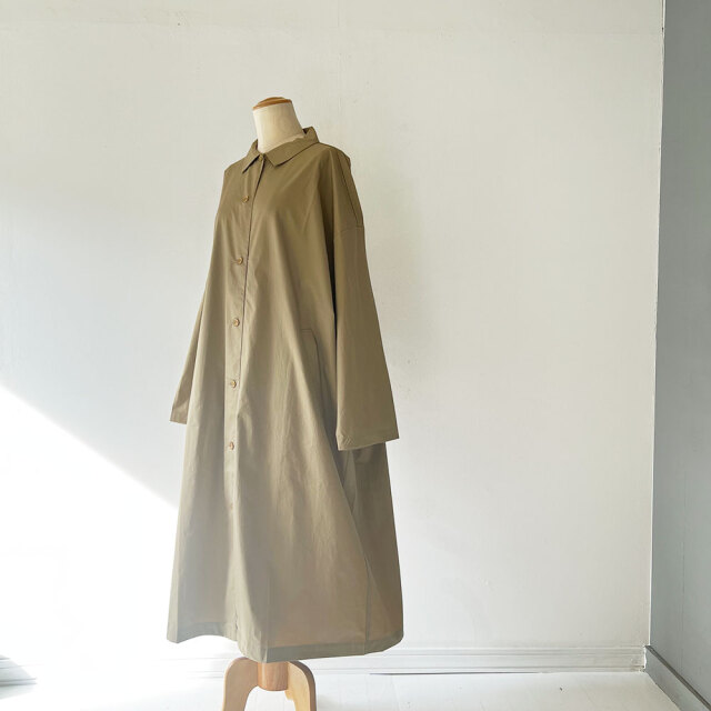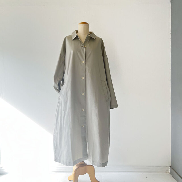 ロング丈でざっくりと着られる一枚仕立てのステンカラーコート。