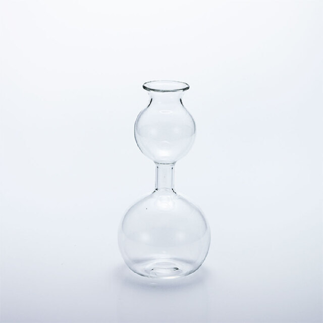 安定感のあるボトムに細いガラス管の挿し口で構成された花瓶です。