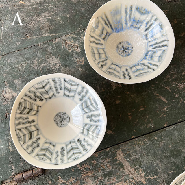 白く美しい透光性磁器に、深い錆呉須で描かれる墨絵の様な