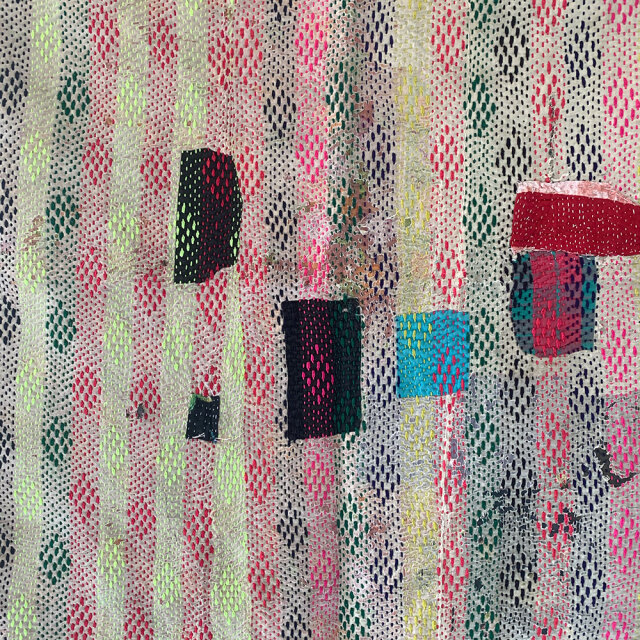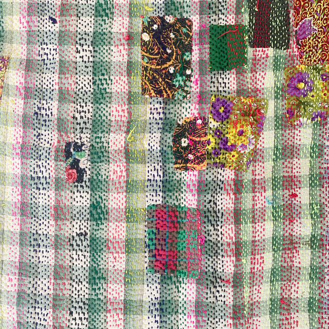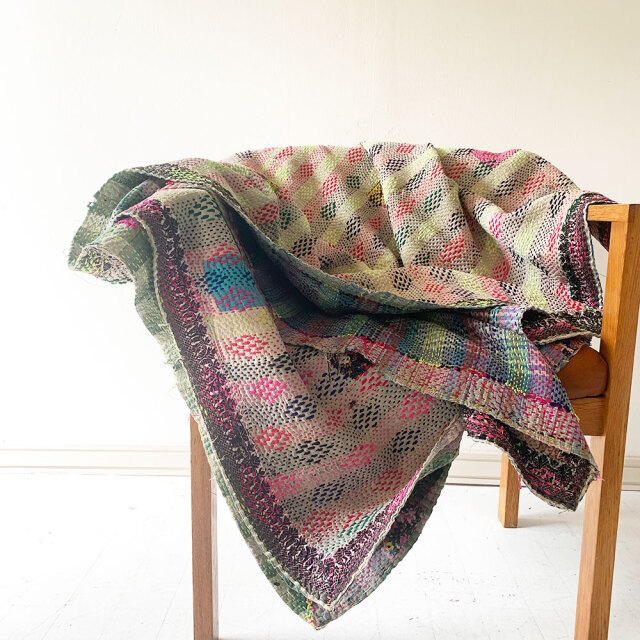 古くなったインドのサリーや布を幾重にも重ねて