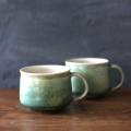 コーヒーやスープなどに合う広口低めのマグカップ。