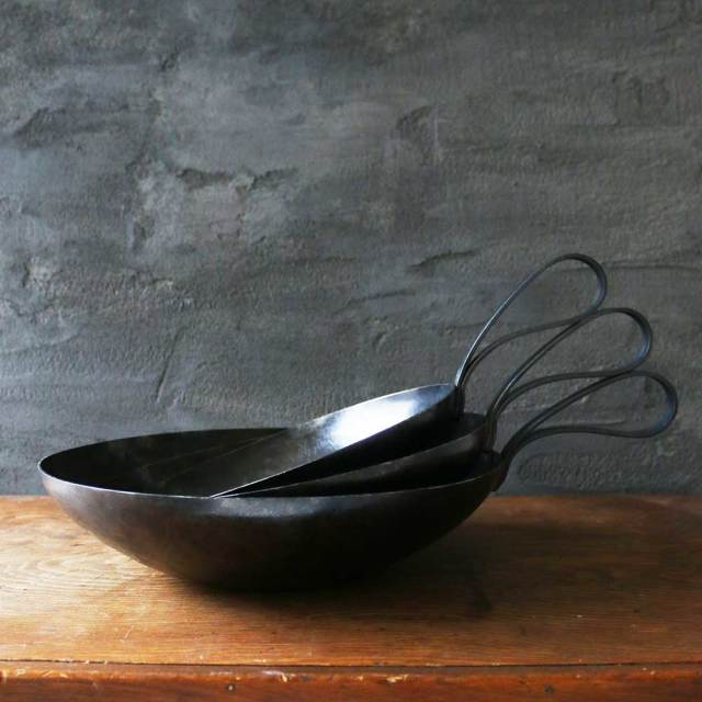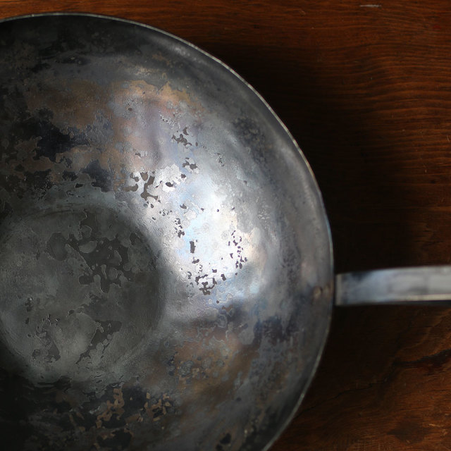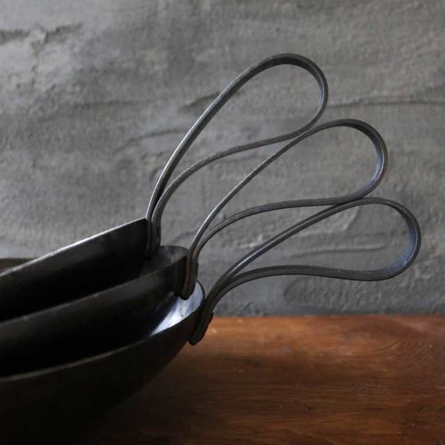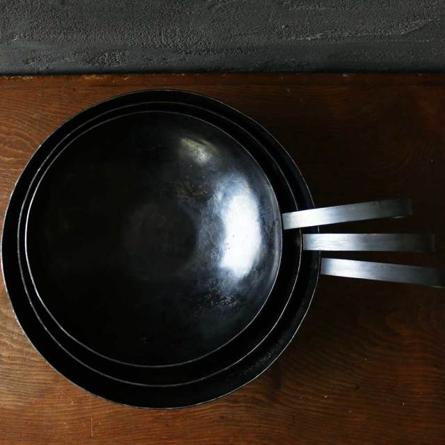 丹念に叩き、時間を掛け仕上がる鍛造の中華鍋。